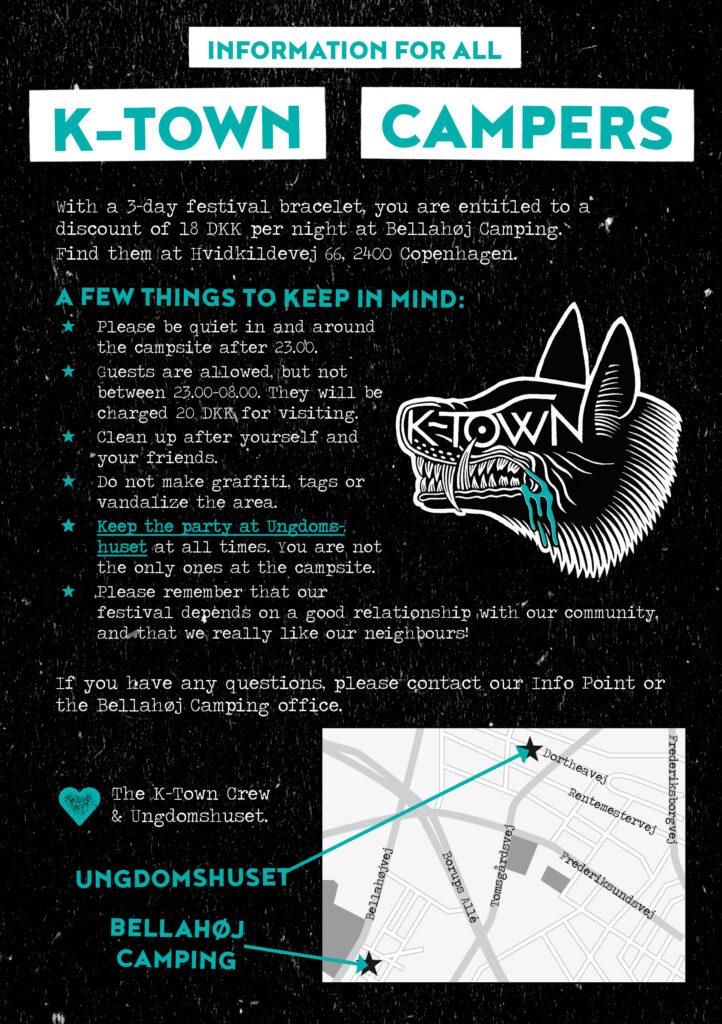 It’s only a short walk from Ungdomshuset and our guests with a 3-day festival bracelet will get a discount onf 18 DKK per night!
