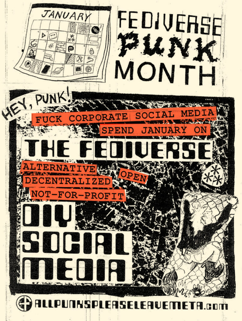 Check out this new interview with two of our collective members, done by Martin Force, who runs The Counterforce zine as part of the ‘Fediverse Punk Month’. The interview gives a ‘behind the scenes’ look of our thoughts, reasoning and ideas of leaving META’s platforms.